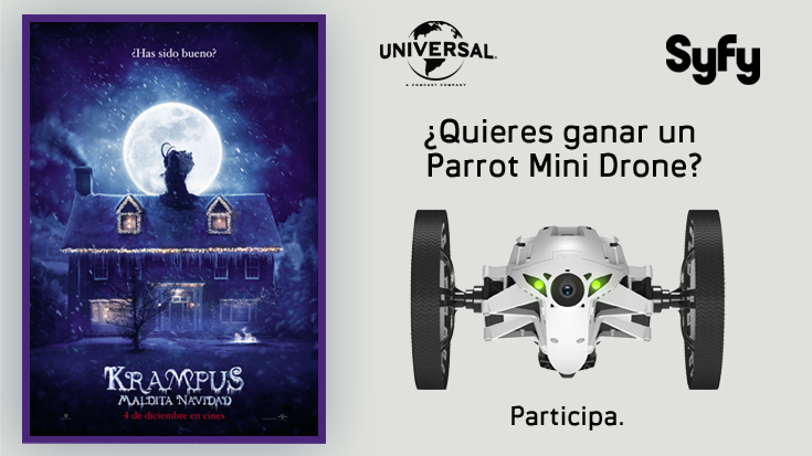 Cuéntanos qué es lo que más odias de la Navidad y gana un PARROT MINI DRONE con la película 'Krampus - Maldita Navidad'. Una escalofriante y terroríficamente divertida película para toda la familia, que nos advierte sobre los peligros de perder el espíritu navideño. Legendary Pictures y el director y guionista Michael Dougherty (Truco o trato, y guionista de X-Men 2 y Superman Returns/El regreso) llevan a la gran pantalla la antigua leyenda del demonio navideño KRAMPUS. Tienes hasta el día del estreno, 4 de diciembre, para participar.