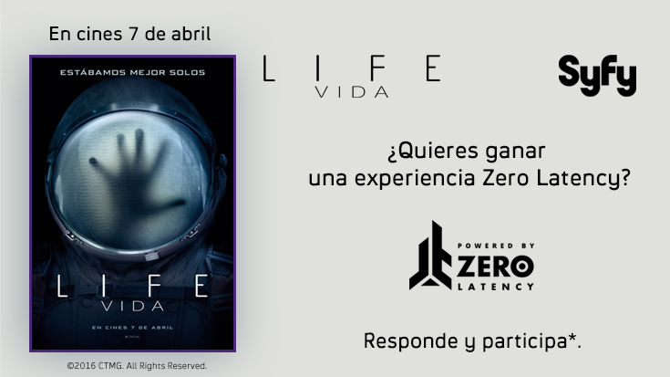 La película Life (Vida), de Sony Pictures España, y Syfy, te dan la oportunidad de ganar uno de nuestras 10 experiencias dobles de realidad virtual Zero Latency. Cuéntanos cómo te enfrentarías a una amenaza alienígena y podrás ganar. Tienes hasta el día del estreno en cines, el viernes 7 de abril, para participar.