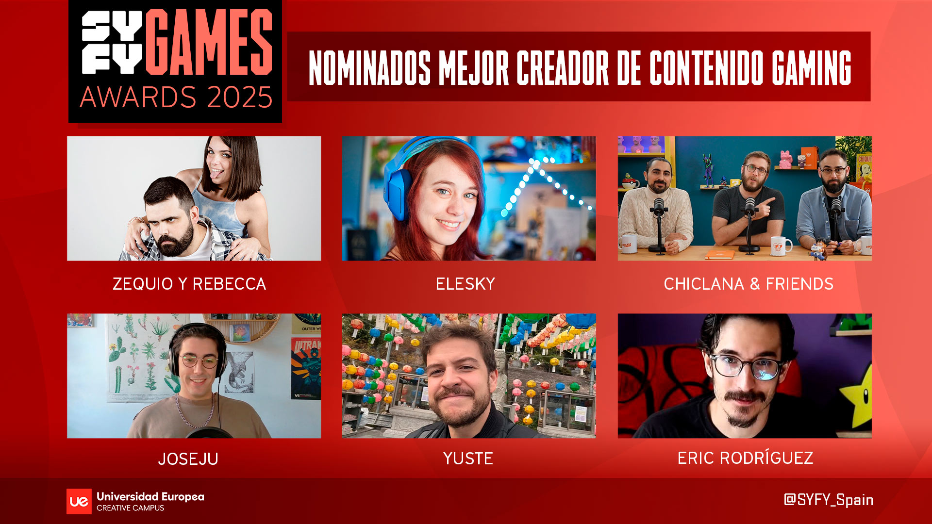 Madrid, 24 de noviembre de 2025. – SYFY España celebra este mes de diciembre la tercera edición de los SYFY Games Awards, los premios con los que el canal reconoce lo mejor del mundo de los videojuegos y de la creación de contenido gaming. Este año, por primera vez, la entrega contará con una ceremonia en directo presentada por Borja Pavón, que se celebrará el 2 de diciembre en el Creative Campus de la Universidad Europea de Madrid, patrocinador de SYFY Games.
